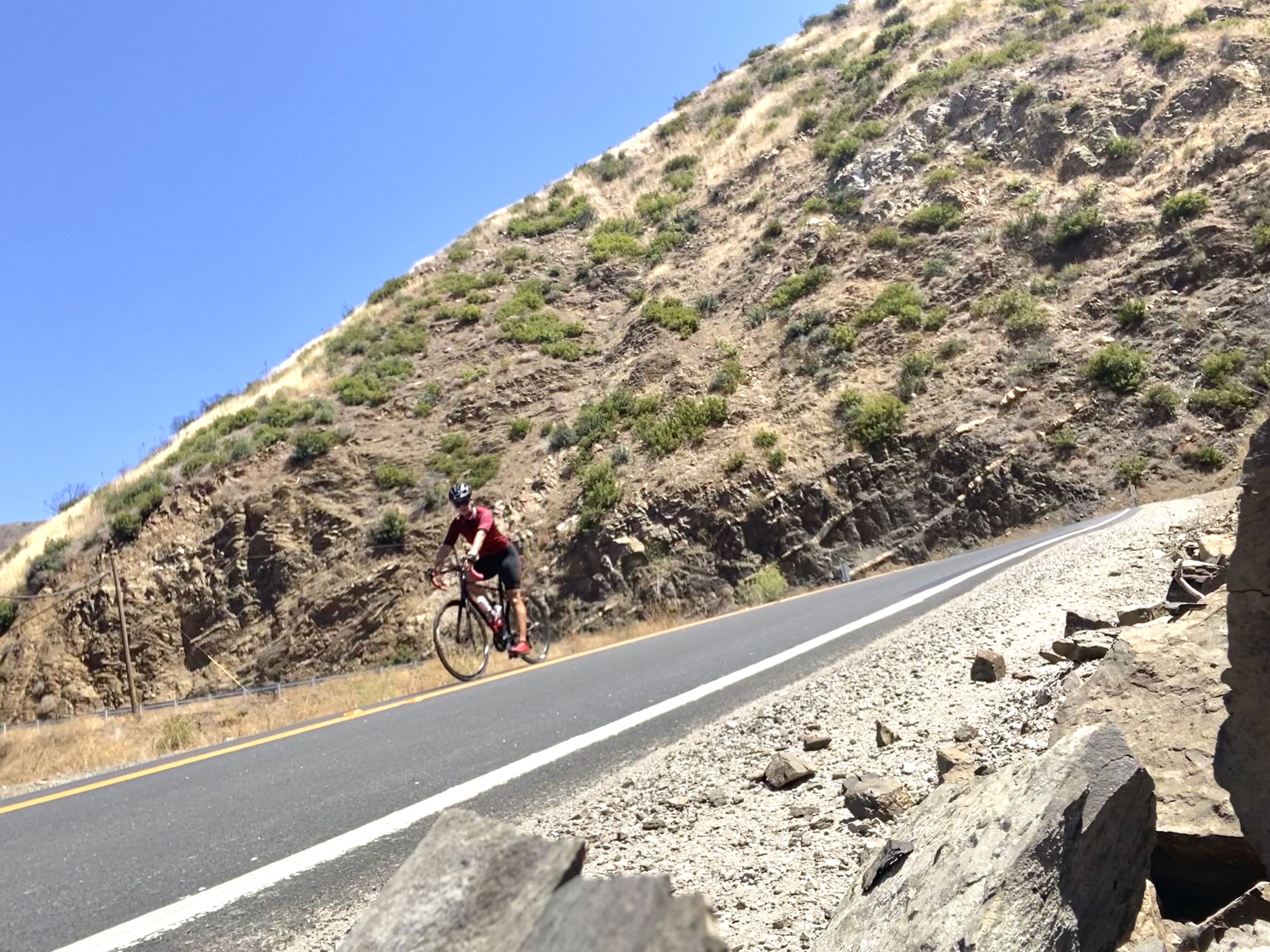 The road is an endless climb for miles. You can’t get a pace, steady rhythm to climb, it’s impossible, so, make sure you have enough to drink and keep hydrated, In the morning there’s less traffic, especially during the weekends; some curvy areas are not safe to ride in the middle of the lane.
